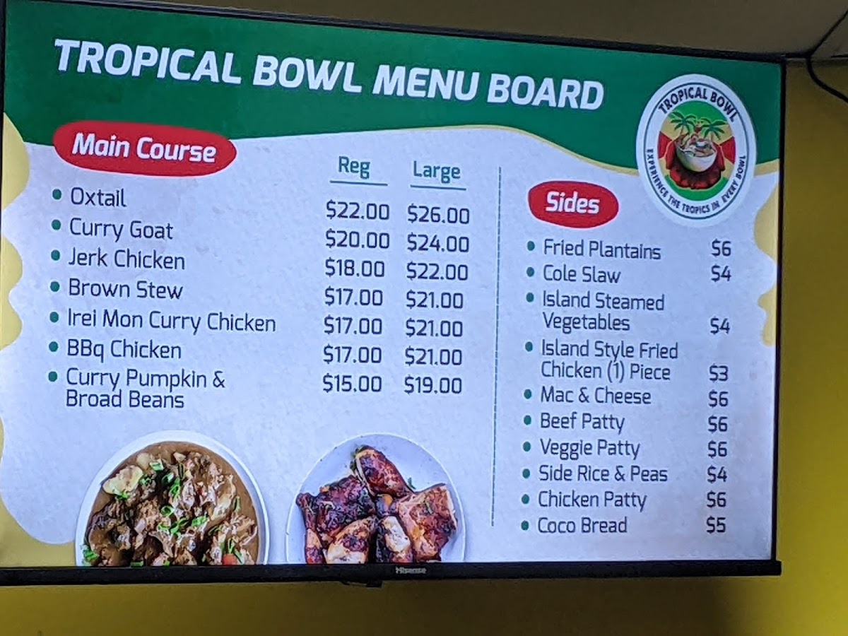 The sides, including the fan-favorite fried plantains, are a must-try for their sweet, velvety texture, perfectly complementing the savory mains. Patrons rave about the generous portions, ensuring there's always enough to take home. With an inviting atmosphere and friendly staff, Tropical Bowl is more than just a meal; it’s an experience that creates lasting memories. Don’t miss this hidden gem that will have you coming back for more!